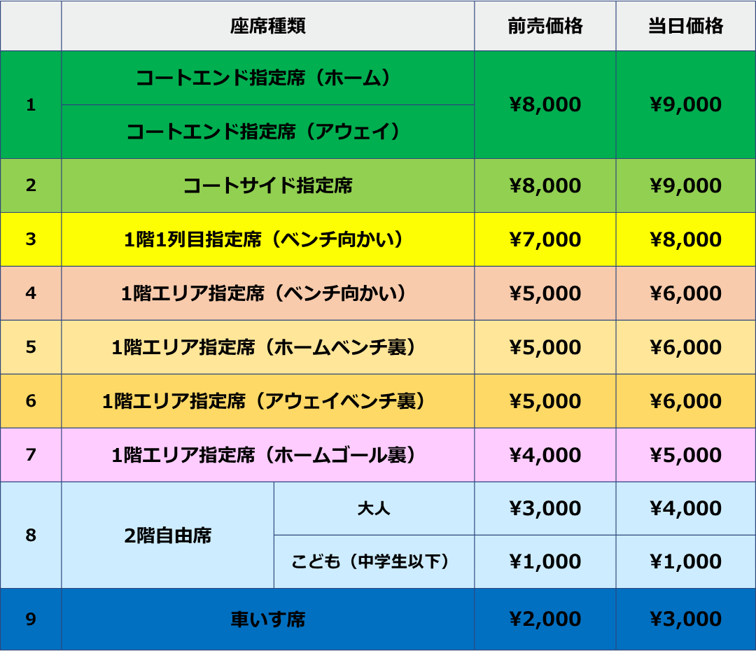 ※コートサイド席は、事前にシーズンチケット販売を実施していますので、シーズンチケットでの販売分を除き販売しています。