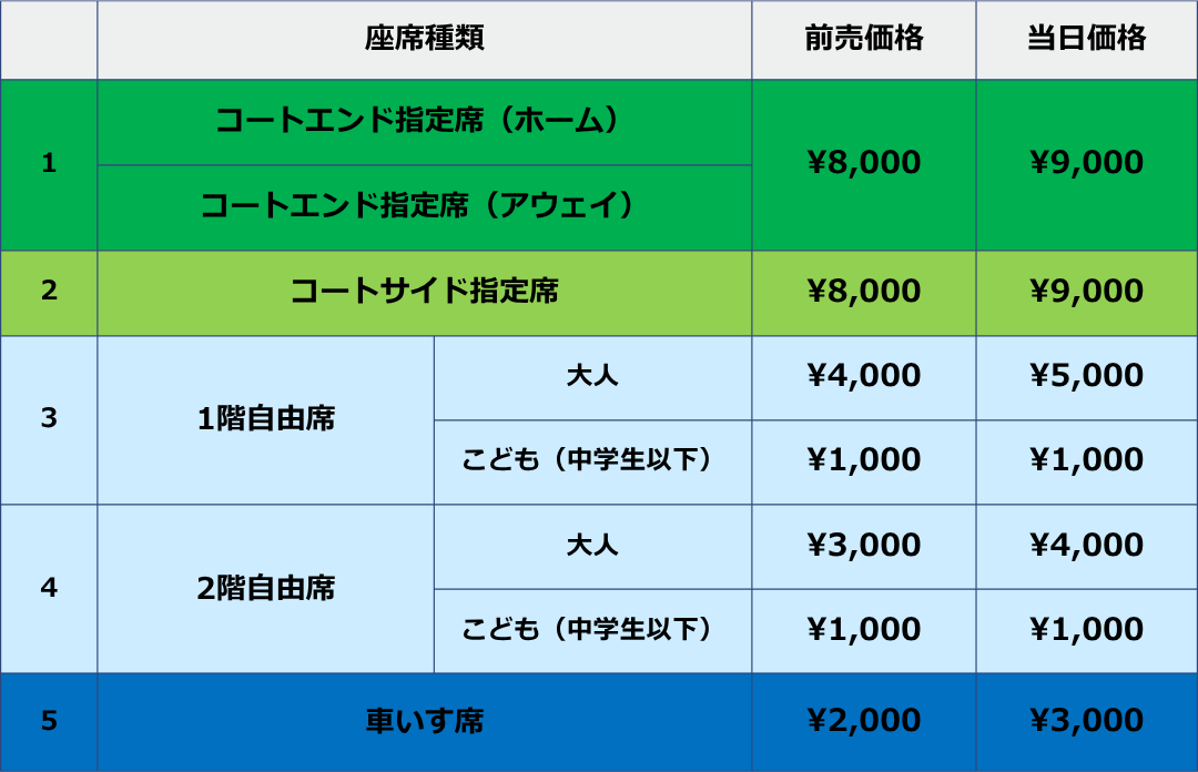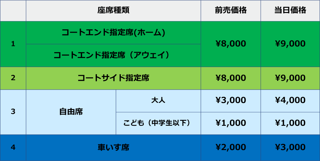 ※コートサイド席は、事前にシーズンチケット販売を実施していますので、シーズンチケットでの販売分を除き販売しています。